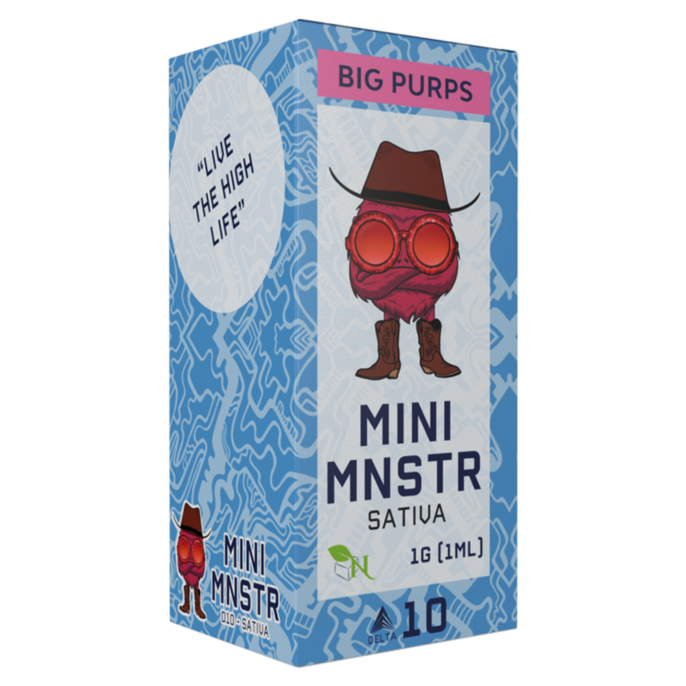 Unpack your Mini Mnstr Disposable Big Purps for an effortless vaping experience with the energizing blend of Delta 10 in a Sativa formula. Start with one or two gentle puffs to gauge your tolerance and energy needs. Allow 10-15 minutes between puffs to fully experience the uplifting and focusing effects before deciding if additional puffs are needed. Designed for portability and ease, this compact disposable vape ensures smooth use anytime. Enjoy the bold and fruity Big Purps flavor as part of your daytime routine, helping you stay energized and mentally sharp